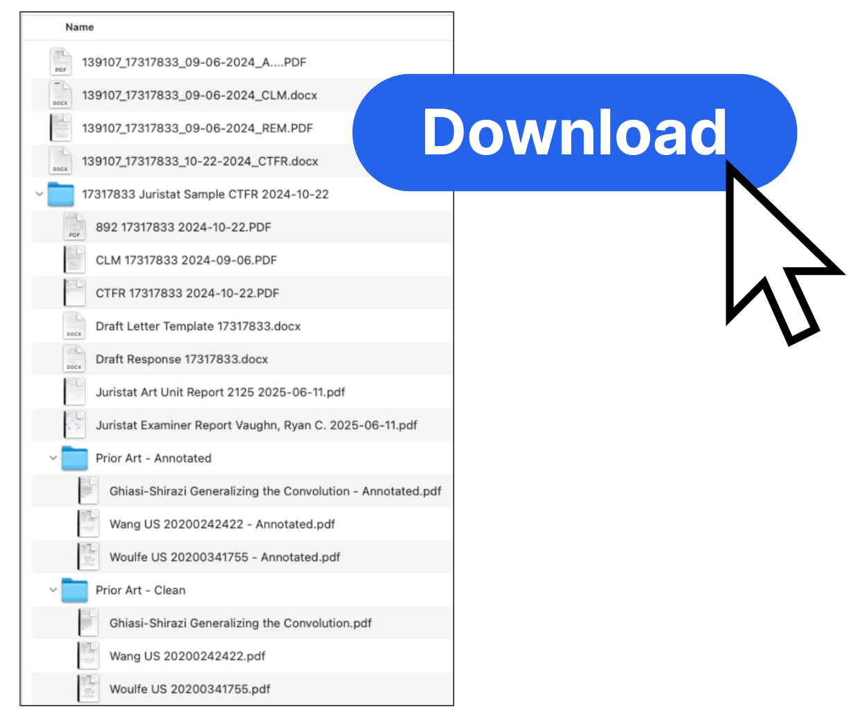 Juristat OAR connects directly to USPTO data to instantly generate a response shell. Add your arguments, finalize, and file—without the repetitive admin work.