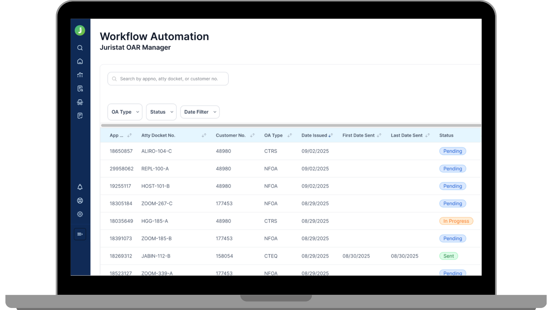 Juristat Office Action Response (OAR) automates the most time-consuming parts of prosecution—so your team can draft faster, reduce errors, and focus on strategy.